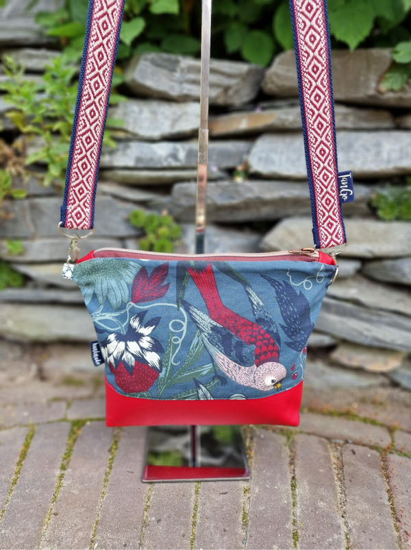 Dit is een heerlijk tasje waar lekker veel in kan. Wij staan elke keer weer verbaasd hoeveel je er in kwijt kan! De tassen komen met een standaard zwarte of donkerblauwe strap. Wij maken alle tassen zelf, dus elke tas is uniek!